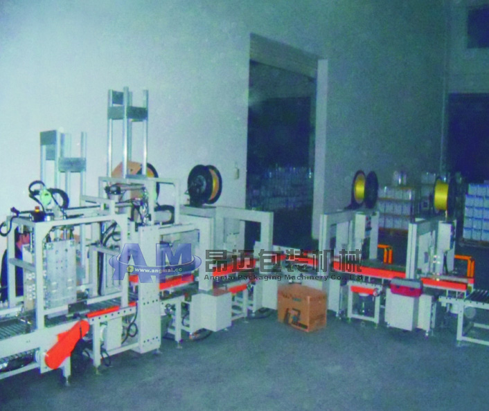 昂邁包裝機械廠家直銷化工油漆桶自動供紙板打包線,有需要該機器的請撥打我們的服務(wù)熱線:0769-87905270